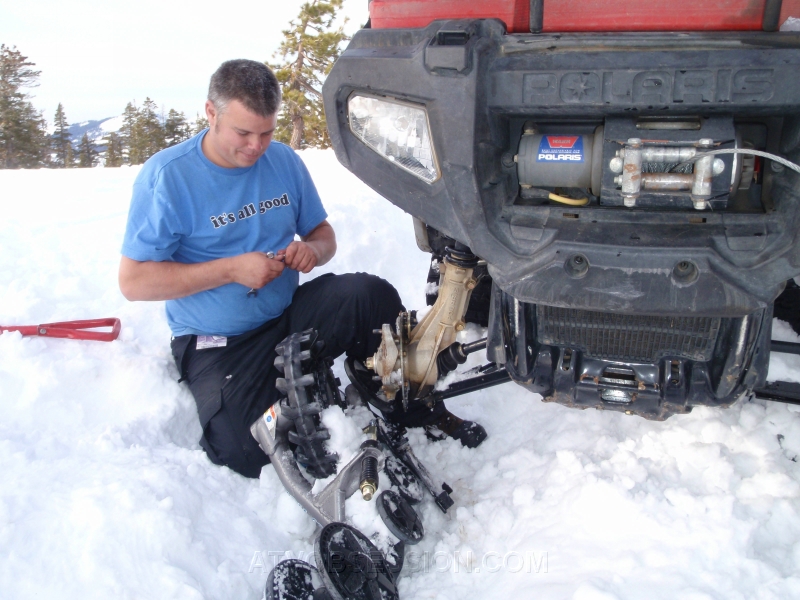 | The first snow ride of the year. This year, Scott grabbed a set of Tatou 4S tracks for his Sportsman. So we decided to hit the Rubicon Trail, with about 3-4 feet of snow and see how they do! Check out the pictures and video.