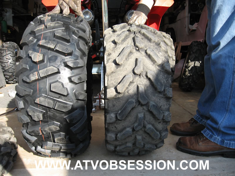One of the first things you will notice, is the Bighorns are HUGE! Buy accordingly! In this shot on the right, you are seeing a 26" Bighorn vs. 26" Polaris PXT. I know photos can be deceiving, but this is no trick. The Bighorn is much bigger than it's sizing. So when you order...plan accordingly. The 26" Bighorn really has the diameter of a 27" tire. So if you want to keep a little more power and you tend to trail ride more often, do not feel inadequate picking up the 25" sizing. It will ride like a 26".