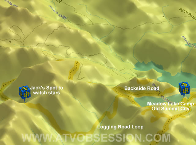 | Once in camp, a nice night ride is to hit the logging roads. Stop at Jack's Spot for some star gazing. |