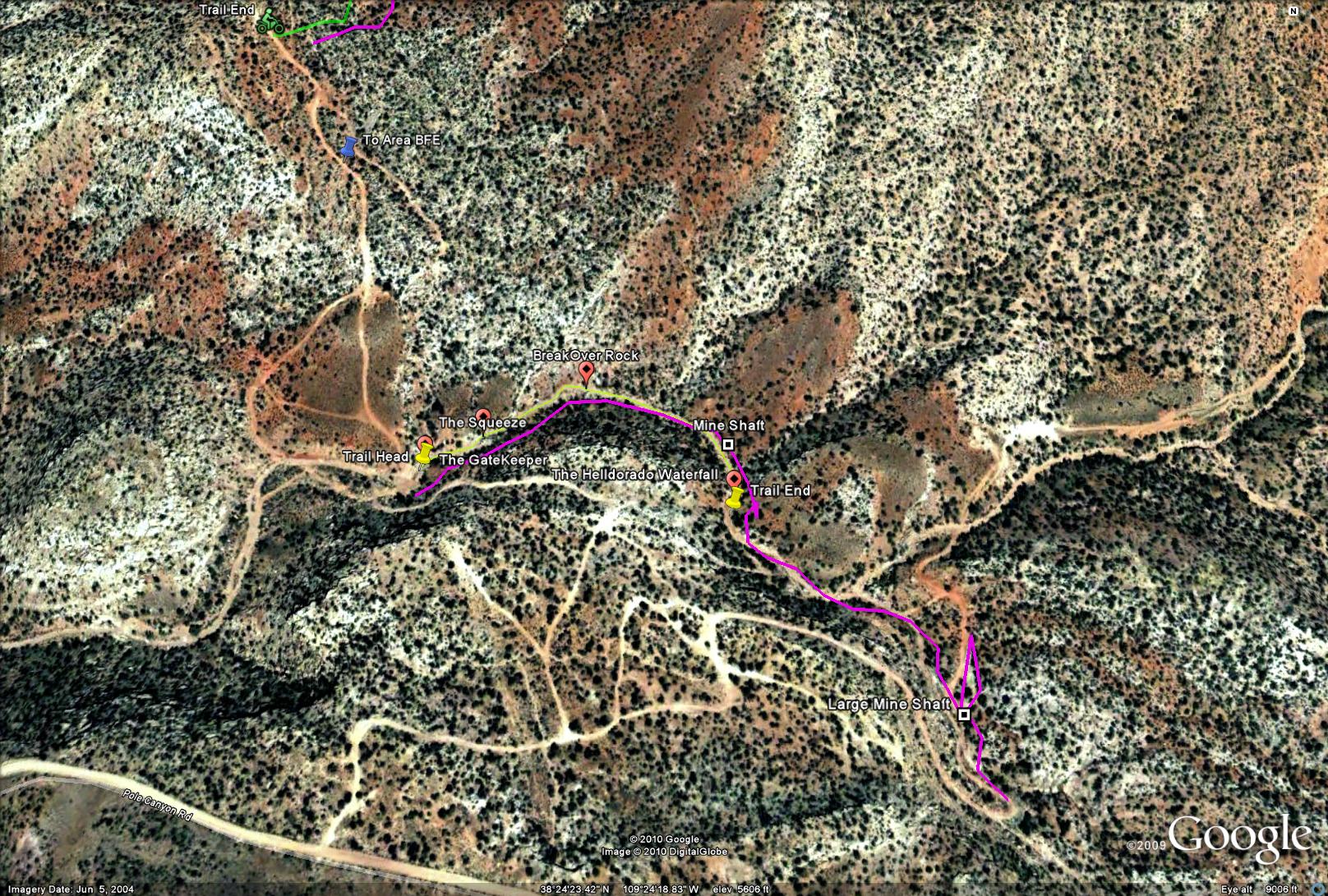 Description: Pritchett Canyon is as beautiful as it is evil. There are 2 extreme obstacles, Rocker Knocker and Rock Pile. There are several difficult sections besides those 2 extreme sections. This trail is a workout. If you are REALLY ambitious, you can do Pritchett Canyon and ride over to Behind The Rocks and do that too. But I would estimate that is 40+ miles round trip. Definitely an ALL DAY thing. This KMZ contains are partial tracks from 2007. We went up Rocker Knocker and turned around as we ran out of light. |